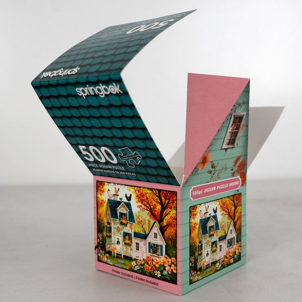 Rise and shine to the rustic charm of the Hen House Puzzle. Packaged in a delightful, house-shaped box, this limited-edition design celebrates the simple joys of country living—fresh eggs, cheerful hens, and a sunlit morning on the farm.