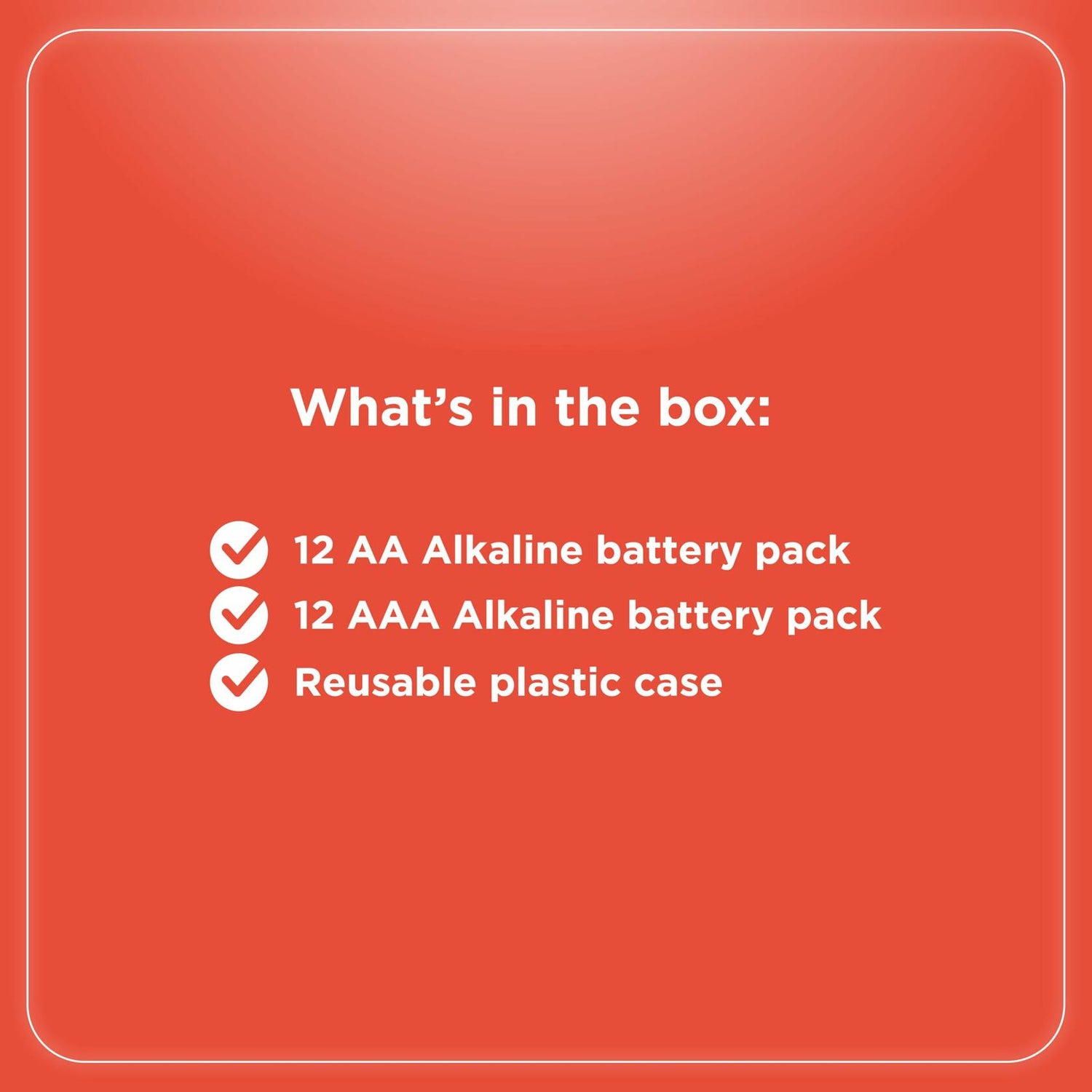 This mixed AA and AAA Battery pack delivers a reliable power solution designed to meet the demands of your electronic devices. With 1.5V, they provide consistent and long-lasting power, making them perfect for a wide range of gadgets and everyday items. Crafted with precision and durability in mind, they ensure dependable operation, providing peace of mind for your daily activities, whatever they may be. Their exceptional longevity, coupled with a high energy output and low self-discharge rate, means they offer extended runtime, reducing the frequency of battery replacements and minimizing disruptions to your schedule. Trust your devices to operate smoothly and efficiently for longer periods, regardless of where your work or leisure activities take you. Designed with everyday use in mind, and manufactured with high-quality materials and advanced technology, they ensure durability and reliability in any situation. Their stable voltage output and leak-resistant design provide added reassurance, allowing you to trust that your devices will function safely and effectively. Their compact size makes them easy to store and carry, ensuring you always have spare batteries on hand for emergencies. The large-count items help you have ample batteries for multiple devices, and spares to keep around when needed. Designed with a low environmental impact compared to other battery types, their long lifespan and energy efficiency help reduce waste and minimize your carbon footprint. You’re not just powering your devices; you're also minimizing your impact on the planet. Whether you're replacing depleted batteries or stocking up on spares, these batteries are the ideal choice for all your power needs. Trust in the quality and performance and enjoy uninterrupted power with these batteries. The combination of AA and AAA batteries allows you to have both and meet the necessary power needs of most of your day to day items. It comes in a reusable plastic case that you can use to store other batteries in the future.