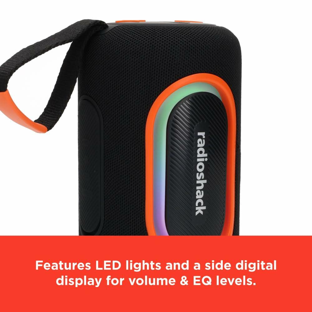 Experience your music like never before with the RadioShack wireless Speaker with RGB Lights. Combining top-tier technology with eye-catching design, this speaker is perfect for any setting. Whether you’re at home, having a party, or exploring the great outdoors, this speaker will elevate your auditory experience. The powerful 20W output paired with high-fidelity dual 57mm speakers ensures that every note and beat is delivered with exceptional clarity. Feel the music come alive as the vibrant RGB lights dance to the rhythm, creating a dynamic and visually captivating atmosphere. Versatility is at the heart of this speaker. Enjoy seamless wireless connectivity with Bluetooth 5.3, or explore multiple playback options including MP3, FM radio, U disk, TF card, and AUX modes. The TWS connection allows you to pair two speakers for an immersive stereo sound experience, doubling the fun and enhancing the audio depth. Stay connected and enjoy extended playtime with the built-in 3600mAh lithium battery, providing 4-6 hours of uninterrupted music. Its compact size and IPX5 waterproof rating make it rugged and portable, perfect for both indoor and outdoor adventures. The memory function ensures that you can pick up right where you left off. Designed to fit your lifestyle, the RadioShack wireless Speaker with RGB Lights offers superior sound, dynamic lighting, and unmatched versatility. Let this speaker be the life of your party, the companion on your trips, and the soul of your music experience. Elevate your moments with brilliant sound and dazzling lights – let the music move you.