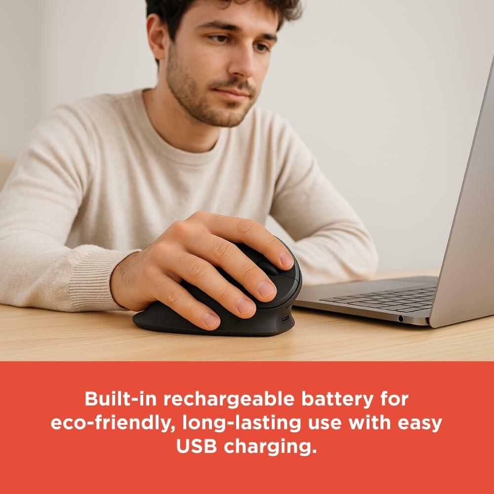 - Ergonomic Comfort: Designed with personal ergonomics in mind, this wireless ergonomic mouse features a contoured shape and supple rubber grips, providing comfortable support for your hand and wrist, educing strain and fatigue during peak flow or extended use.