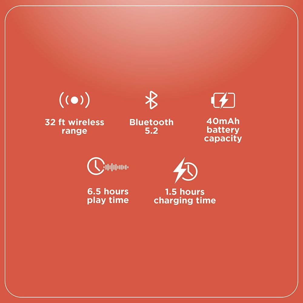- Extended Playtime with Quick Charging: A powerful 400mAh battery ensures up to 6 hours of continuous music playback on a single charge, making these Bluetooth earphones ideal for long commutes, extended work sessions, or your daily workout routine; With fast charging capabilities, you can minimize your wireless earphone downtime so you can get back to your music in no time