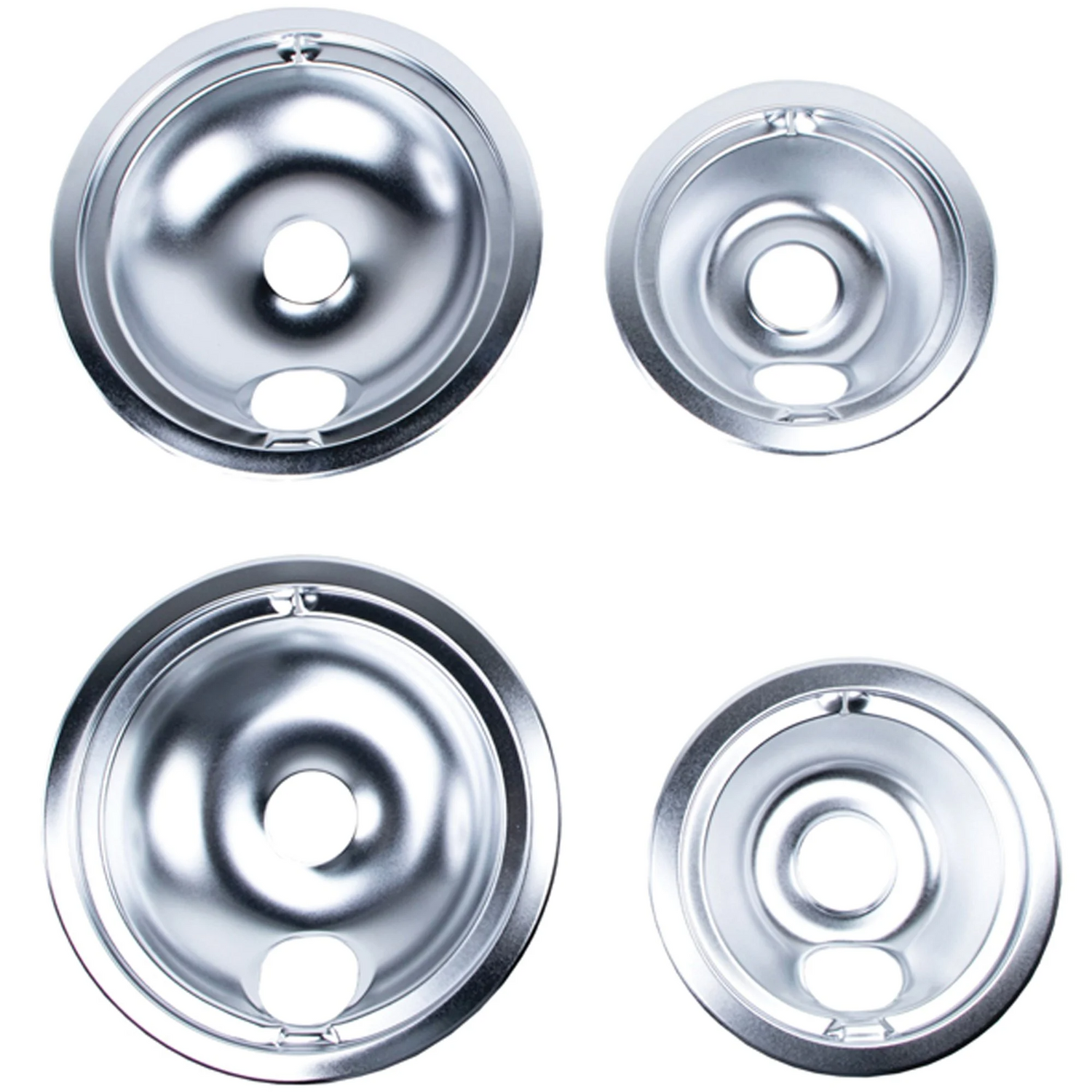 - Set of 4 Style B chrome drip bowls for non-hinged 2 small & 2 large burners