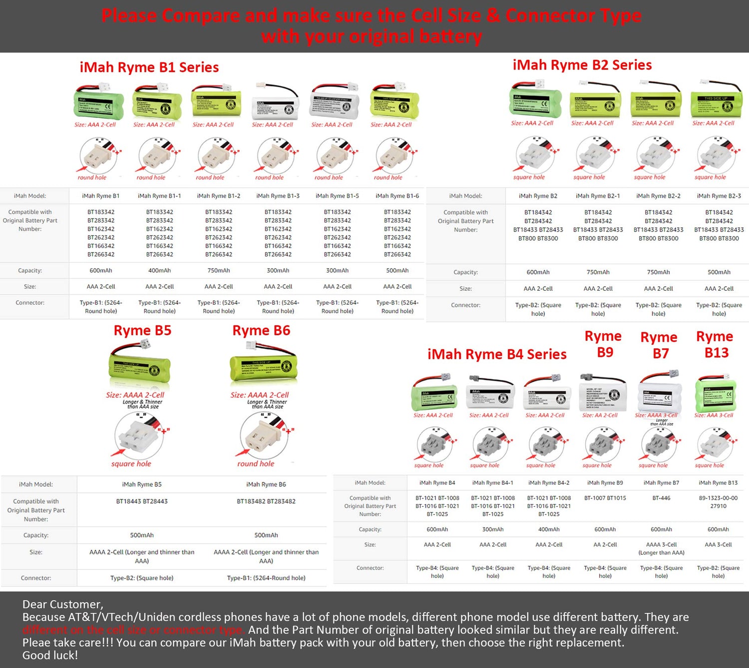 - Come with 6 iMah Ryme B4-1 BT-1021 cordless phone battery packs & Save money to purchase new phones. Buy with confidence. Batteries are printed with manufacturing date (not expiration date), For 24-month after the date of purchase, we iMahDirect take care of all quality-related issues. Do please kindly check the compatible lists to make sure the right size & right connector