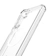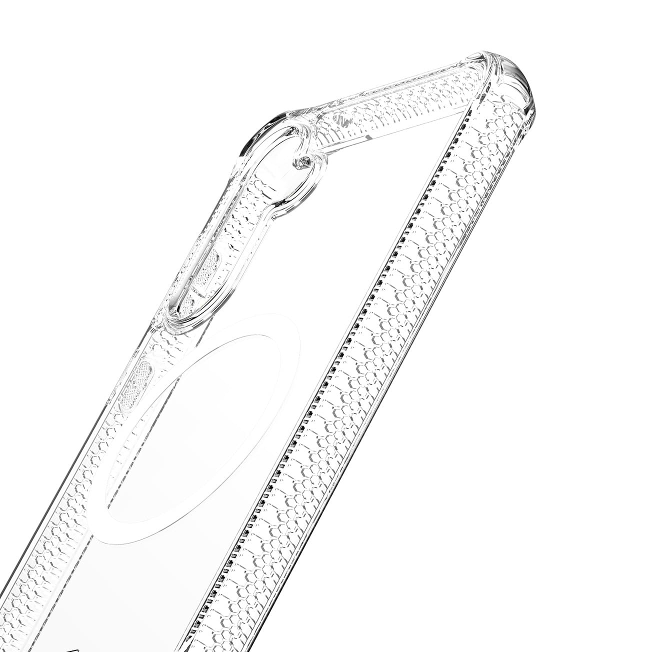 Enhance both style and protection for your Galaxy S23 FE 5G with the Itskins Hybrid R Clear Magnetic Phone case. Experience the perfect balance of flexibility and durability with our slim, lightweight case. This military grade case provides dependable defense against drops, scratches, and cracks while maintaining an aesthetic appeal. The raised edges safeguard your screen and camera, ensuring they remain impervious to potential damage. Featuring a magnetic designs, the magnet ring is placed between two plates for durability without sacrificing attachment strength. It has built-in magnets that work seamlessly with MagSafe charging stands and other accessories. Engineered with Hexotek shock absorption technology and a body bumper protection system, this military phone case is designed to withstand accidental drops and impacts. It offers military-grade drop protection of up to 3 meters (10 feet). Reinforced corners, combined with advanced shock-absorbing materials, ensure that your phone remains secure and well-protected. The ultra-responsive buttons retain the original tactile feel, providing effortless navigation and control. This slim protective case allows you to exhibit your phone's premium aesthetic design while delivering enhanced protection. The custom anti-yellowing TPU polymer guarantees prolonged clarity, maintaining a clear appearance over time. Featuring an optical-grade acrylic armor hard back design and dual material construction, this heavy duty phone case has undergone comprehensive testing for quality and performance, presenting durability and dependable defense against daily wear and tear. Upgrade your phone's protection with Itskins - the ideal fashion, style, and functionality.