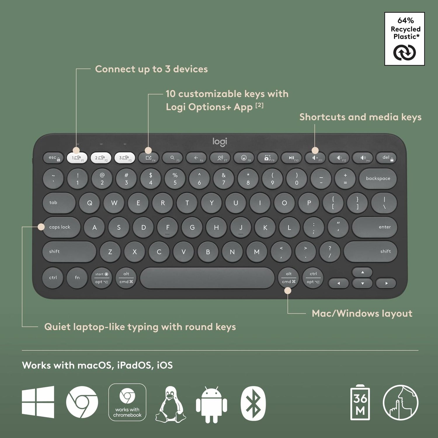 LOGITECH PEBBLE KEYS 2 K380S (TONAL GRAPHITE) - Let the world see who you are with the Pebble Keys 2 K380s. A minimalist and slim keyboard designed to stand out.